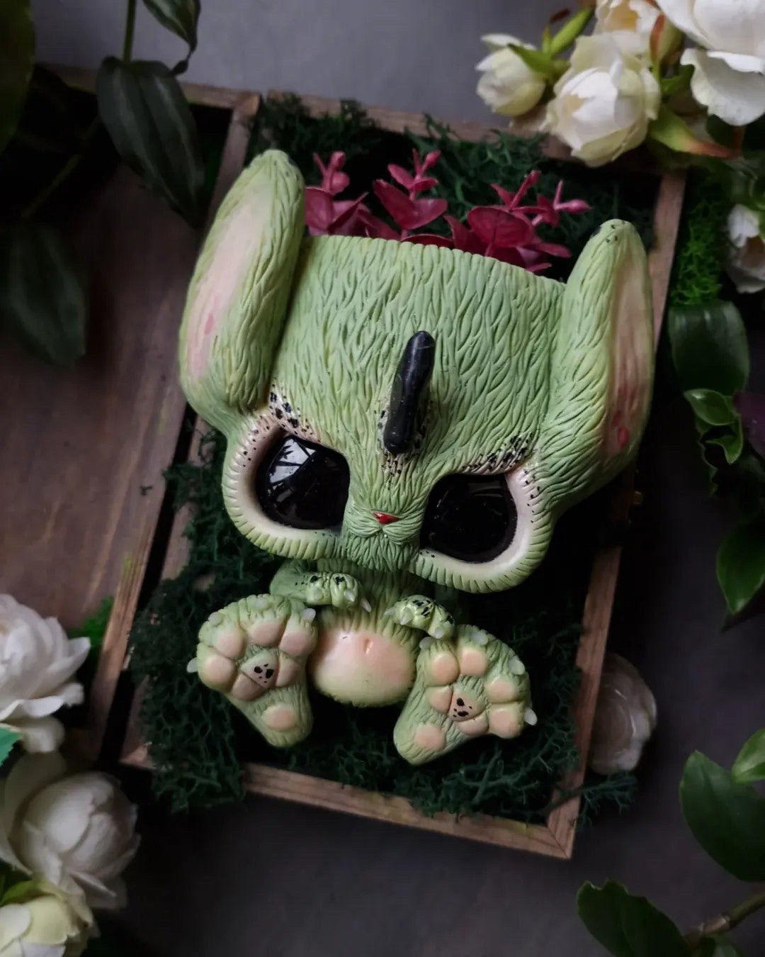 Eyes like the abyss 🖤 This baby Almiraj has a horn made of natural shungite, a stone of grounding and mystery.