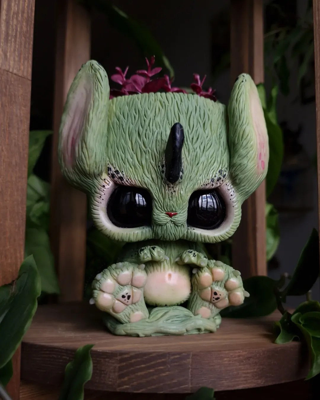 Its fur is a soft grassy green 🌱, sprinkled with beautiful inky black spots — a perfect touch of wild forest magic ✨️
