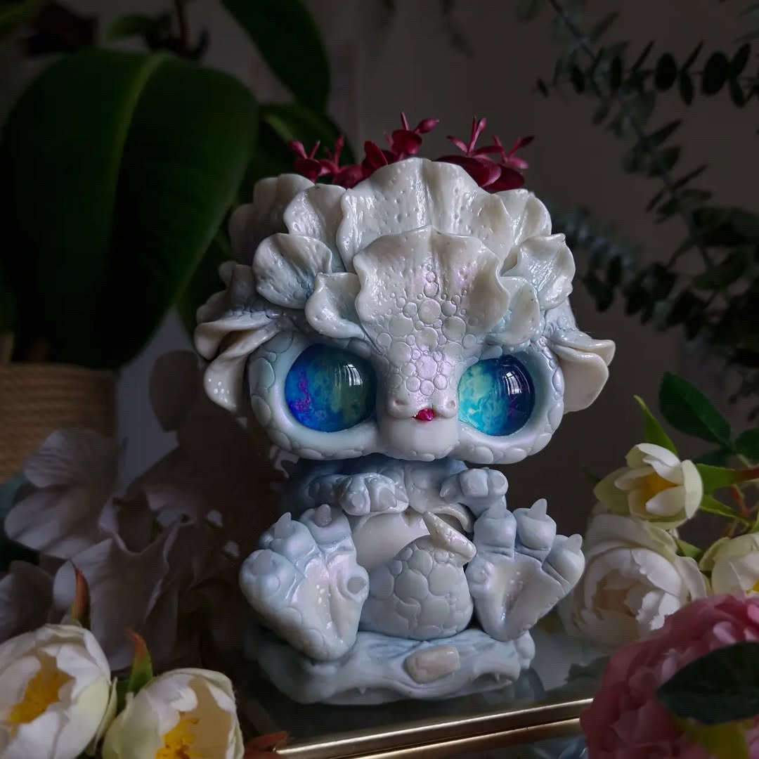 The baby’s shimmering pink scales reflect light with a magical glow, adding softness to its celestial beauty💔