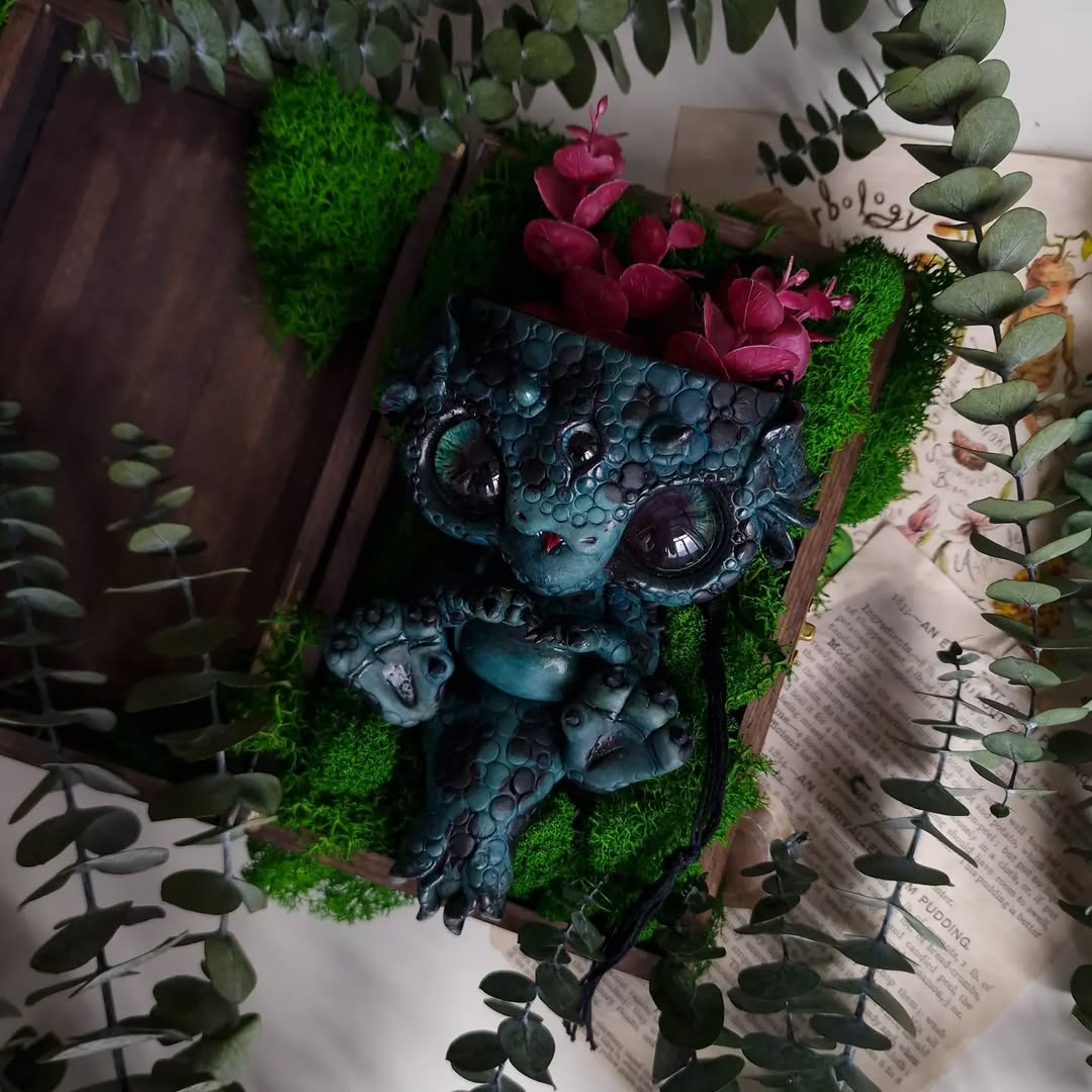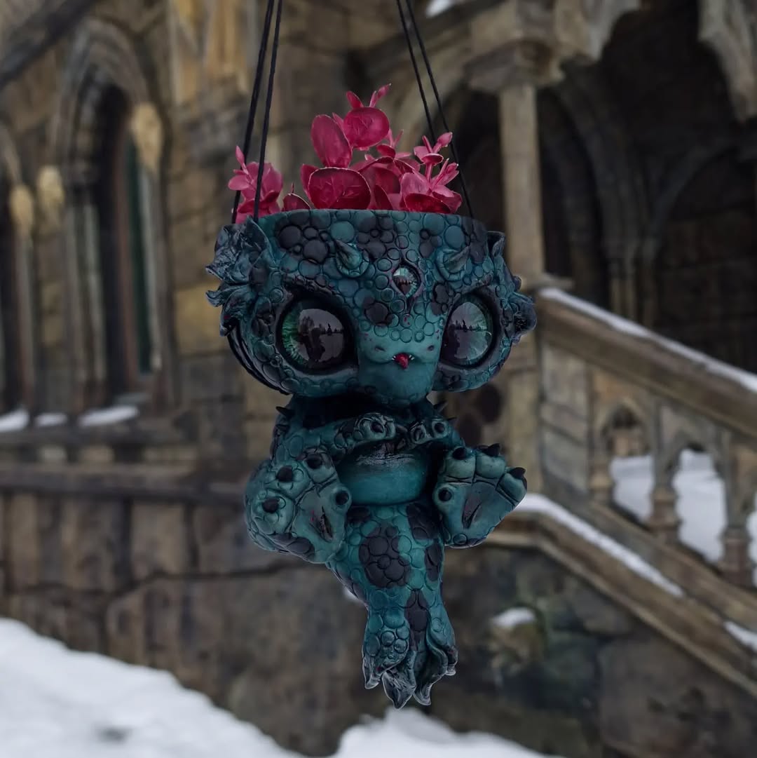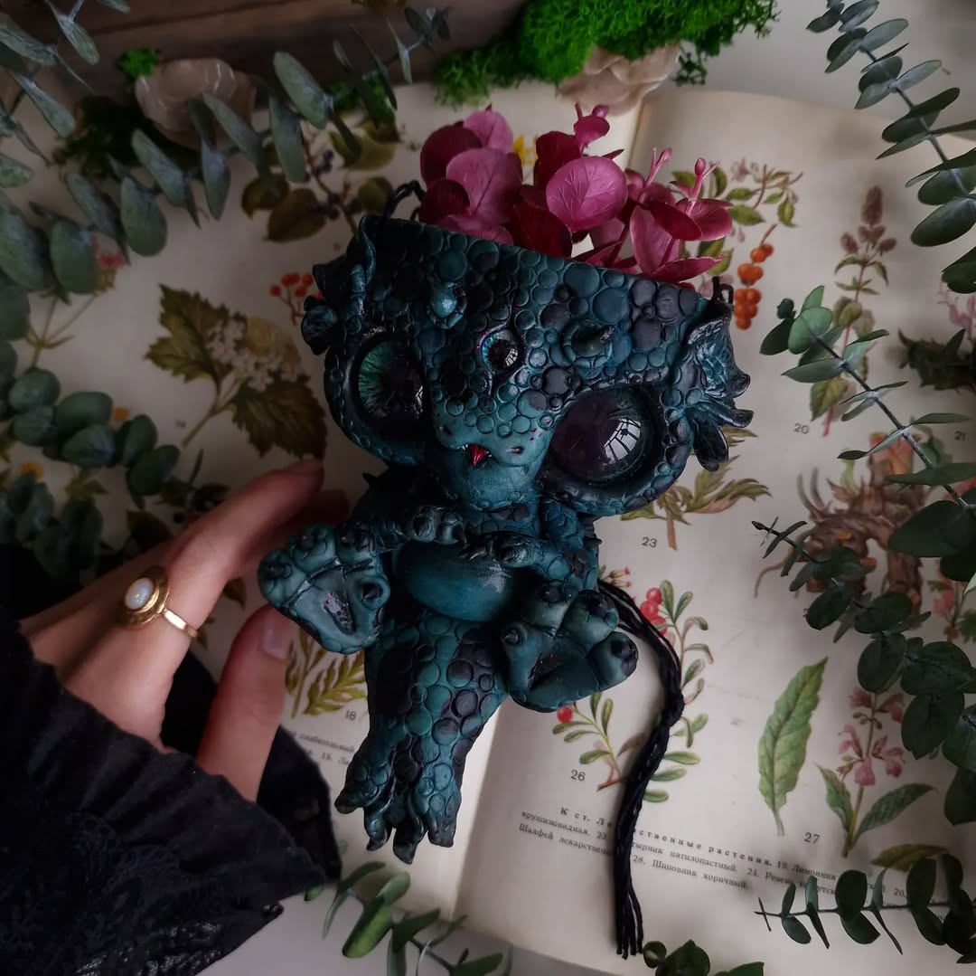 A rare and unusual color for a winged reptile✨️ The smooth scales of this magical creature are adorned with dark, dramatic spots🖤 This hanging dragon has already found a loving home and flown off to its new family. Iabsolutely loved how this little spotted one turned out — so expect more dragons like this to come! 😍