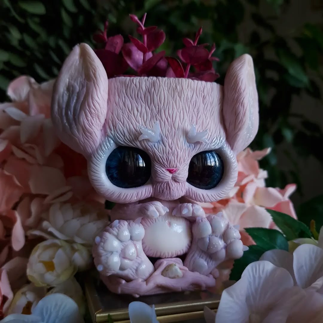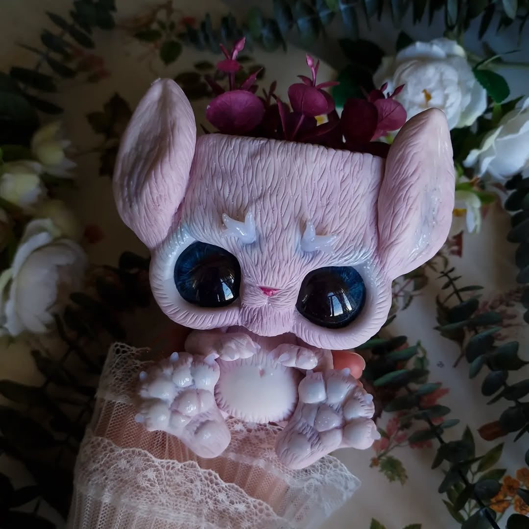 Pink enchantment 🐇🍭🧁🍬🍨 This little jackalope is pure sweetness! From the soft pastel shades to the gentle sparkle in its eyes — every detail is magical✨ The base is adorned with a natural moonstone, adding a dreamy glow to this adorable creature🌙