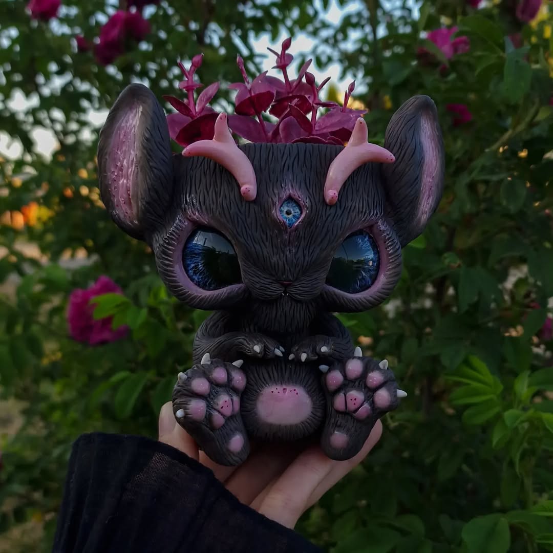 Chocolate Jackalope🍫🐇 Just look at that gorgeous fur color — rich and velvety like cocoa! 😍 This sweet little one rests on a base adorned with natural rose quartz💖 A perfect mix of cozy charm and gentle magic.