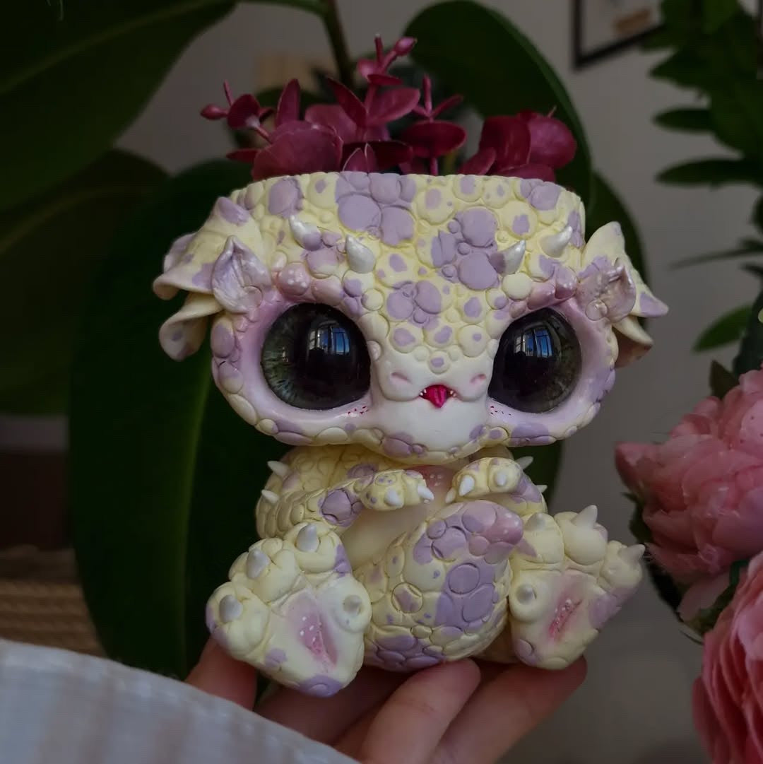 Looks like only his future owner will truly see this dragon’s full beauty💛💫 I tried to capture his charm in the photos📸 — but the camera just can’t do justice to his delicate coloring. In real life, he’s like a soft banana marshmallow — sweet, creamy, and magical! 🍌✨ His base is adorned with natural rose quartz, adding even more gentle warmth and tenderness💖